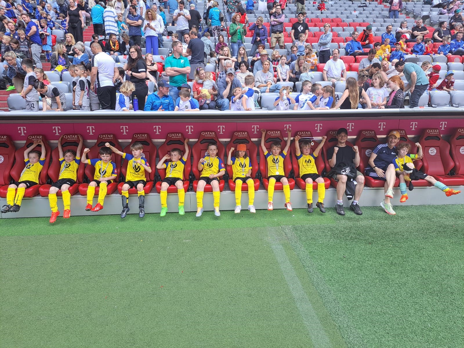 mehr DetailsEin absolutes Highlight für die F2-Jugend vom Sportverein Münsing-Ammerland war das Funino Turnier „Kick mAA`s“ in der Allianz Arena am 26.5.23. Die Mannschaft war positiv aufgeregt und fuhren voller Vorfreude nach München. Durch Begeisterung, Teamspirit und dem Glück, auf Profirasen spielen zu dürfen, schaffte es die Mannschaft auf Platz 2 in dieser Gruppe. Ein bleibendes Erlebnis war am Schluss das Fotoshooting auf der Spieler- und Trainerbank. Ein bleibendes Erlebnis für alle. Vielleicht schafft es ja ein Kind, später hierher als Prof...